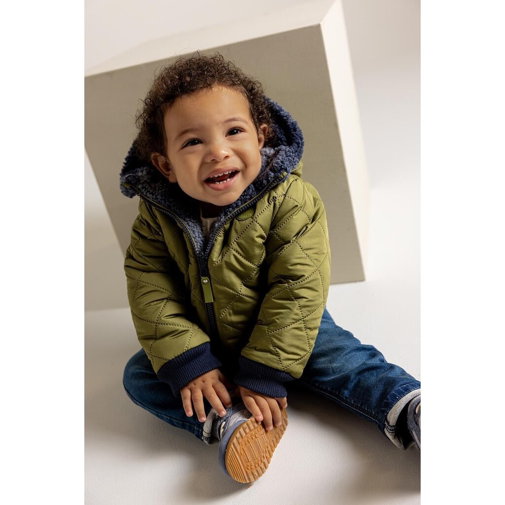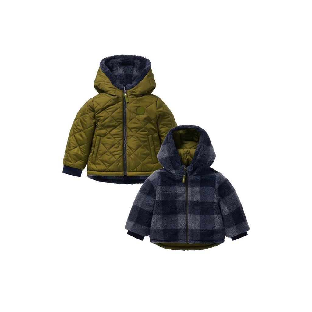 De Omachi jongensjas van Noppies Baby is de ideale combinatie van stijl en functionaliteit. Deze trendy jas is omkeerbaar, waardoor je twee looks in één hebt en kunt variëren zonder meerdere jassen aan te schaffen. Voorzien van een comfortabele capuchon, ritssluiting en twee zakken aan de groene zijde. Winddicht en waterafstotend, houdt deze jas je zoon heerlijk warm en droog tijdens winderige en natte dagen.